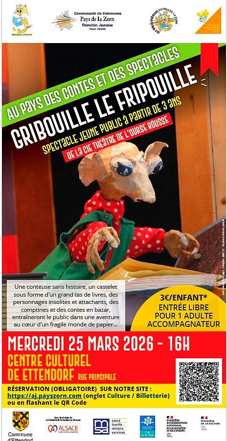 Dans le cadre du cycle de spectacles jeune public « Au Pays de Contes et des Spectacles », organisé par l’Animation jeunesse du Pays de la Zorn, la bibliothèque d’Ettendorf propose un spectacle, intitulé « Gribouille le fripouille », accessible à partir de 3 ans.